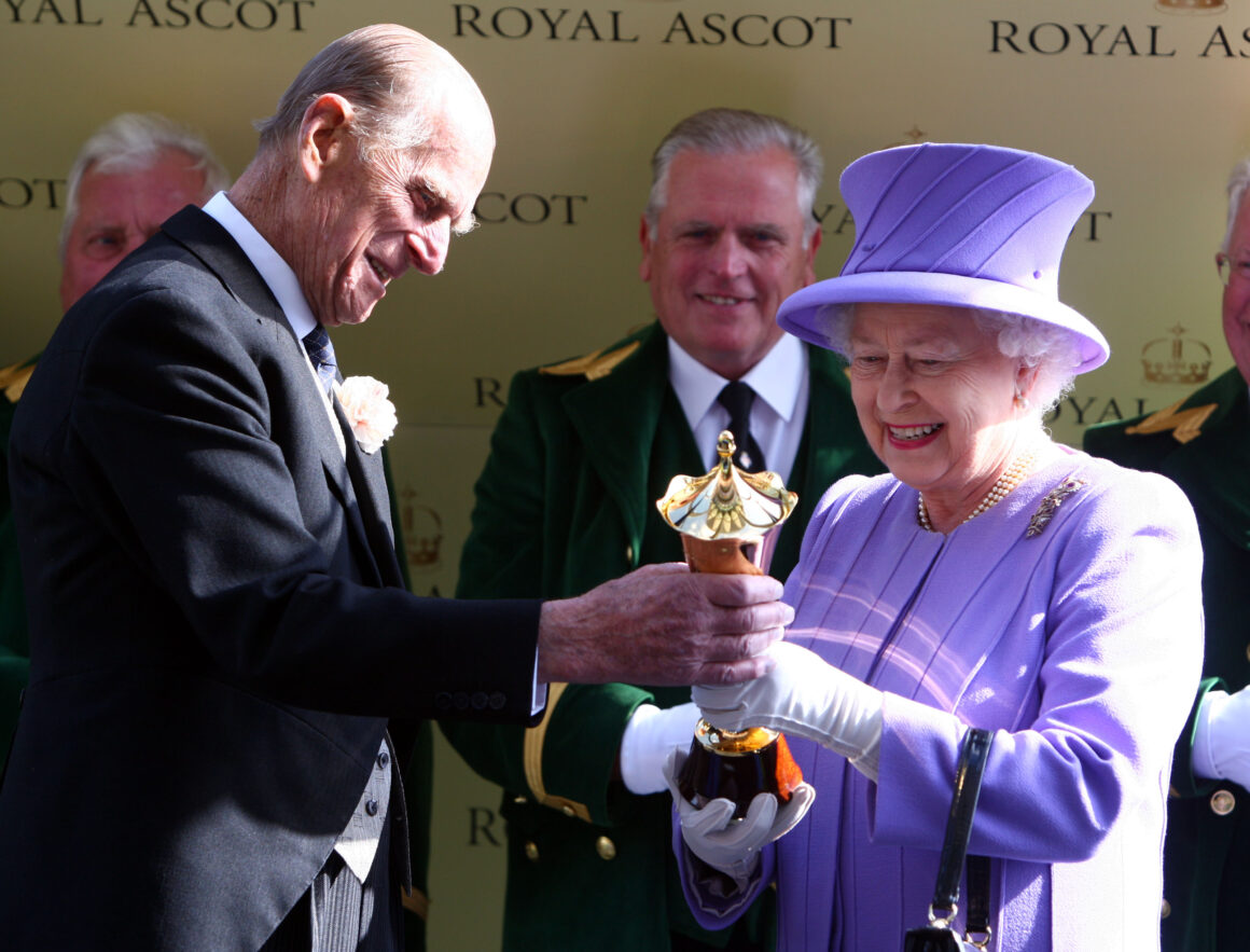 The Duke of Edinburgh presents Her Majesty The Queen with The Queen’s Vase at Royal Ascot after Estimate’s win in 2012.